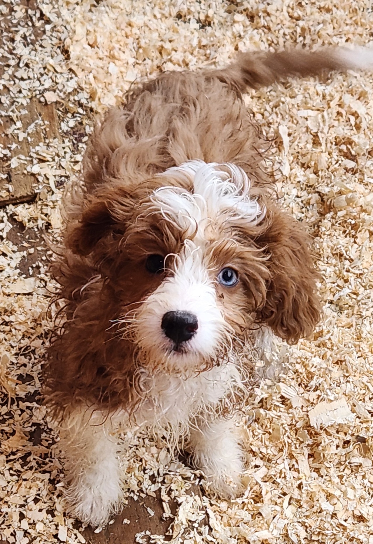 This pup is Cavapoo, 1 male available, 12 weeks old and charting to mature around 10lbs.