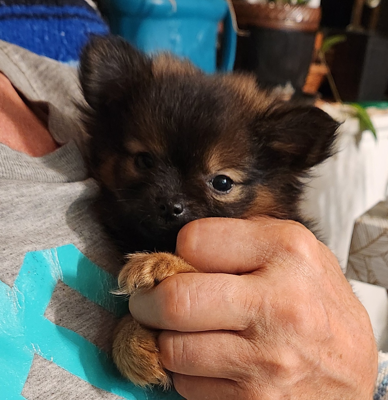 This female pomchi is a teacup, price is $1500.
